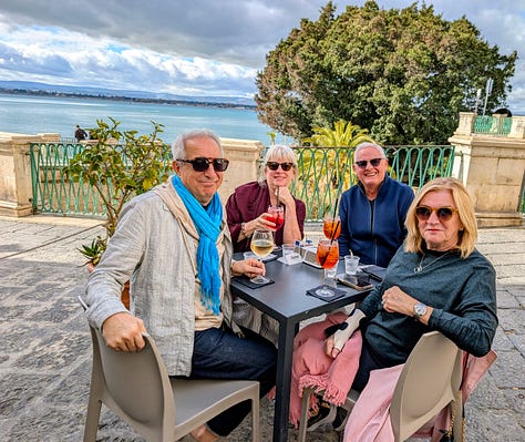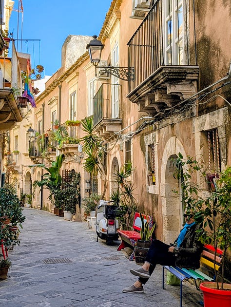 Three weeks earlier, I’d been standing at a different window, looking out at an expanse of a cerulean sea. We had decided to escape the dark, grey winters of Scotland and explore the delights that are Ortigia, Sicily. The apartment was gorgeous, with the owner’s art on every wall, shelves full of books (Italian and English), a fully stocked kitchen. This was the kind of place for which I felt nothing but privilege and gratitude. We had 6 weeks of wandering the ancient streets, Campari spritz, hordes of friendly stray cats, gluten-free cannolis, a daily fish market to die for, Michelin-star meals, long visits from cherished friends, and yet. And yet.